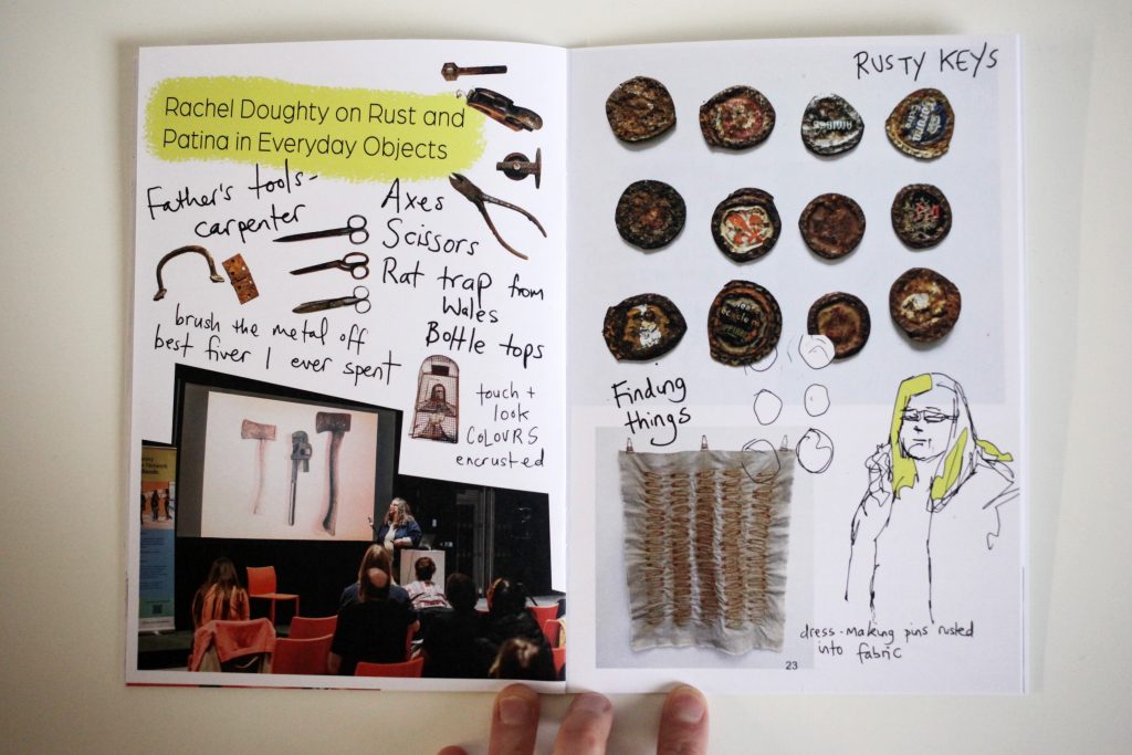 The relaxed multi-generational gathering created space for artists, the public, family and community to connect through storytelling in relation to their collections and idiosyncratic ‘obsessions’. Daniel Reed, Michelle Le Blanc and Colin Odell, Paul Chokran, Rachel Doughty, Hannah Moreton, Janet Tryner, Martina Irwin, Bella, Erik and Remi shared an intriguing range of personal collections and creative passions from local gargoyles to prolific sketchbook practice, rust and patina in everyday objects, to asking: ‘What to take when moving to a new country?’. There were fossils, facts on Japan, playing with food, screws and washers, stone age tools, and Coventry’s very own Tree Sanctuary.